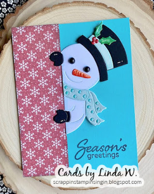 Hi friends - I'm sharing a couple snowman cards today using a new Hero Arts die - Peeking Snowman. I was inspired by the September Christmas Kickstart Challenge theme - Chillin' with my Snowmies and picked up the snowman die set last Thursday at my local craft store. Soooo cute!!