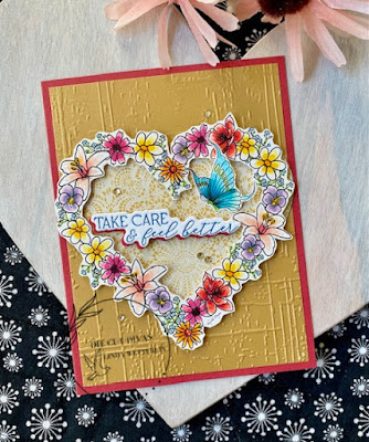 Happy Monday everyone!! Since it's the third Monday of the month, Darnell (djkardkreations) and her IDEAS program participants are using E for embossing (wet or dry). I had the heat tool out for an upcoming Die Cut Diva post so went with wet embossing: